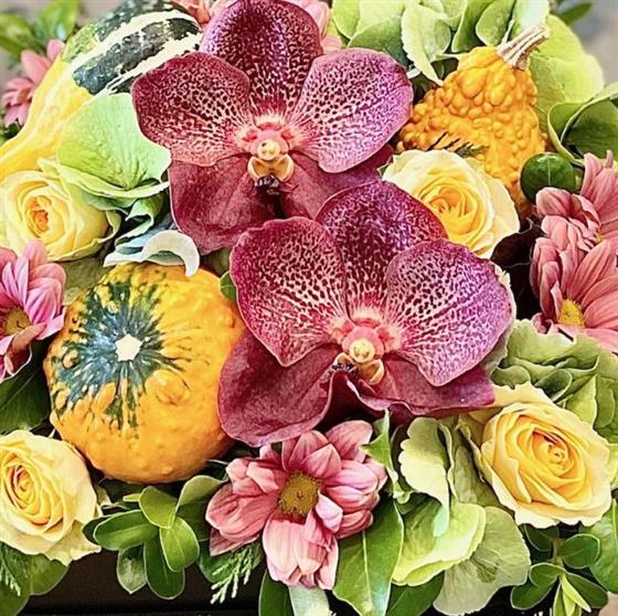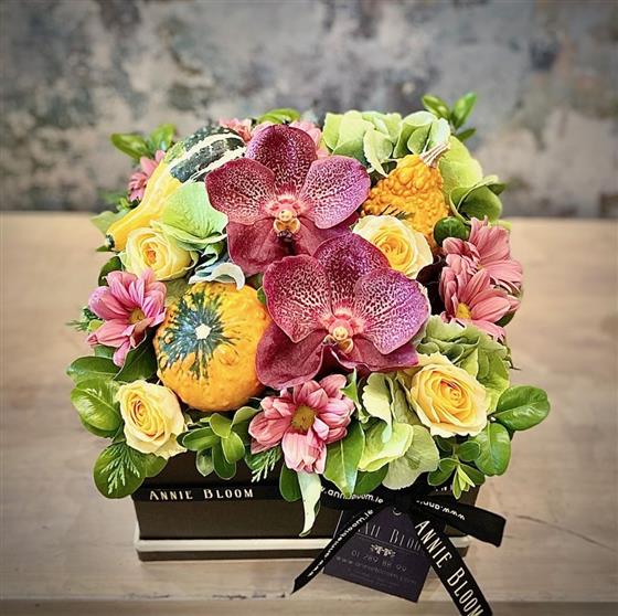 Please note that the flower varieties, colours, and box design may vary from the image shown, but rest assured that our skilled florists will craft an elegant Autumnal design for you.