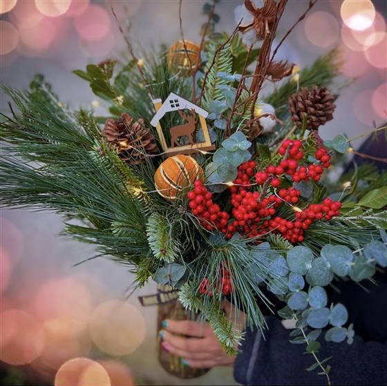 The medium option, as shown in the image, has an average stem length of approximately 30-35cm, making it an ideal size for various settings. Whether you're treating yourself or looking for a thoughtful gift, this arrangement is sure to bring joy during the winter season.