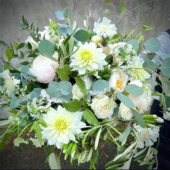 Experience the refreshing combination of zesty limes, crisp whites, and buttery creams, pastels with our stylish garden-style bouquet. This exquisite arrangement is accentuated with beautiful locally grown Irish foliage, adding a touch of natural elegance. Each bouquet is meticulously hand-tied and delivered in an eco-friendly glass container, ensuring a sustainable and stunning display.
